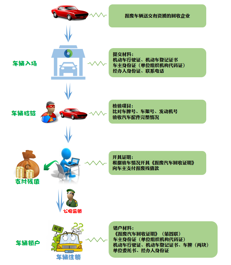 對(duì)報(bào)廢出租車進(jìn)行無(wú)害化處理、拆除可再利用的零部件和總成;按各物品的材質(zhì)種類分別存放;對(duì)機(jī)體和結(jié)構(gòu)件等進(jìn)行壓扁或切割處理。