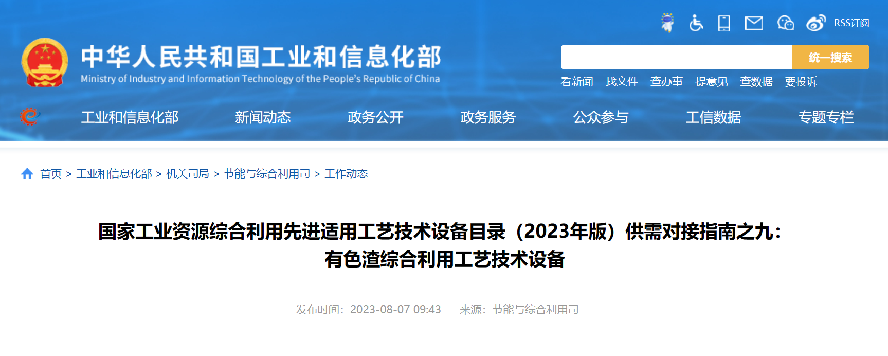 國家工業(yè)資源綜合利用先進適用工藝技術(shù)設備目錄(2023年版)供需對接指南之九:有色渣綜合利用工藝技術(shù)設備