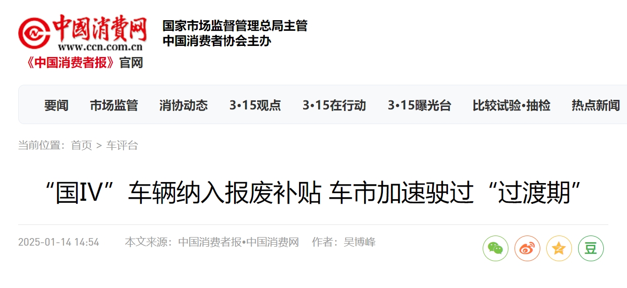 “國(guó)Ⅳ”車輛納入報(bào)廢補(bǔ)貼車市加速駛過“過渡期”