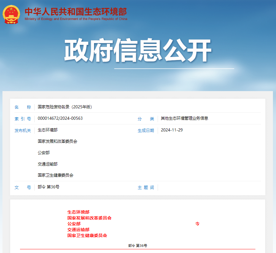 國(guó)家危險(xiǎn)廢物名錄(2025年版)審議通過(guò)