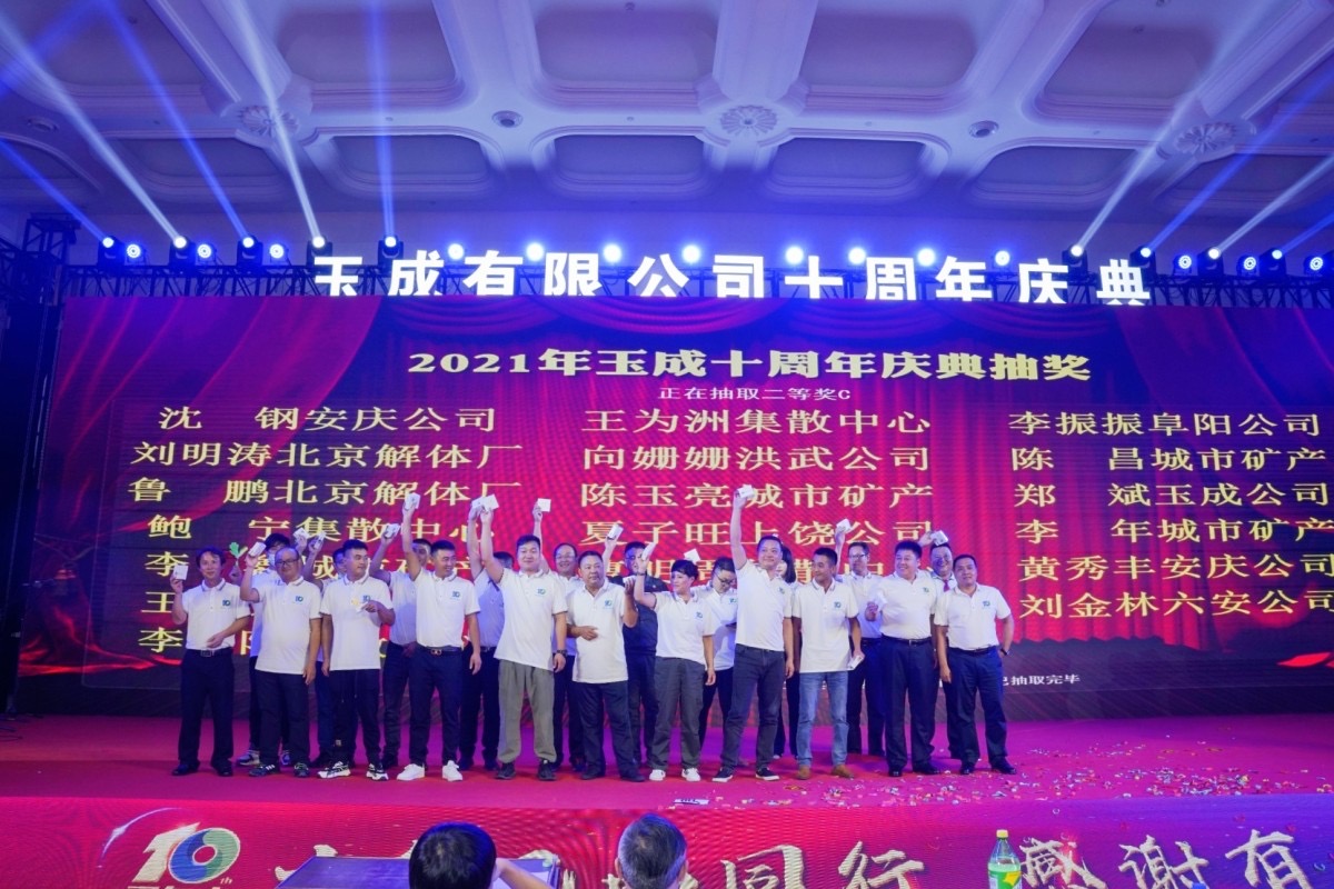 公司成立十周年慶典活動于2021年7月24日在合肥白金漢爵大酒店隆重舉行。慶典活動的主題:十年風雨同行,感謝有你相伴。 時光飛逝,歲月如梭,玉成深耕報廢車行業(yè)已十個年頭,一路走來,經(jīng)歷坎坷、自我提升、實現(xiàn)涅槃,逐漸成長為一名健碩的“報廢車狂人”,已成為報廢車行業(yè)國內(nèi)頭部企業(yè)。
