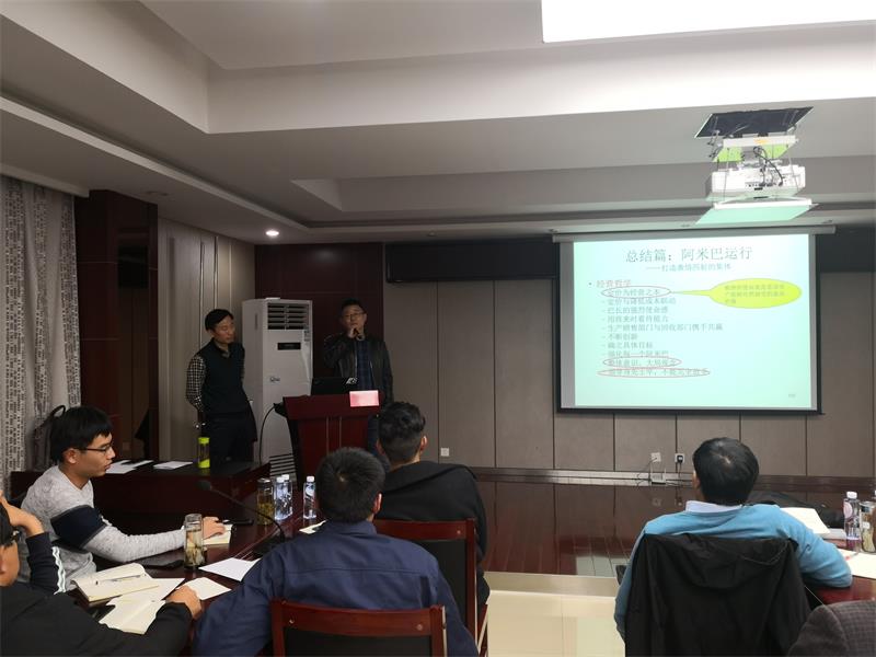 本次會(huì)議一改往期的人員座次,將全體人員按5人一組共分成8個(gè)阿米巴小組、一個(gè)考核組,每組推選一個(gè)巴長(zhǎng),整場(chǎng)培訓(xùn)會(huì)由副總裁何學(xué)海詳細(xì)解讀阿米巴經(jīng)營(yíng)理念、精髓、意義。結(jié)合玉成現(xiàn)有業(yè)務(wù)如何導(dǎo)入阿米巴經(jīng)營(yíng)模式、如何落地以及如何對(duì)每個(gè)阿米巴進(jìn)行考評(píng),最后通過(guò)阿米巴的理念來(lái)制定工作計(jì)劃和目標(biāo),并將計(jì)劃和目標(biāo)落實(shí)到每季、每月、每周,以此來(lái)實(shí)現(xiàn)公司內(nèi)的每個(gè)阿米巴內(nèi)的全員自發(fā)高效的工作,完成個(gè)人和企業(yè)利潤(rùn)******化。